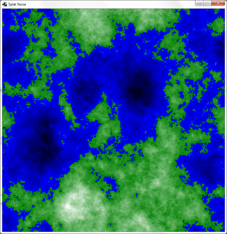 - Combine two splat noise outputs to create a distortion vector map to add detail to a smooth output field from some other algorithm without affecting the range of values.